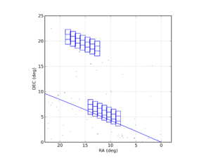 The project will be surveying two sets of fields, spring and fall (see the OSSOSurveyDraft). In each season a 7x3 block of fields will be positioned near the ecliptic plane and a second group of fields will be positioned off the plane (see side figures). Each set of fields will be observed repeatedly through-out the semester, and then again the following year to obtain a high-precision orbits on all KBOs detected in the field. A heavily-overlapping set of imaging should allow an extremely precise internal astrometric (and relative photometric) solution in each patch.